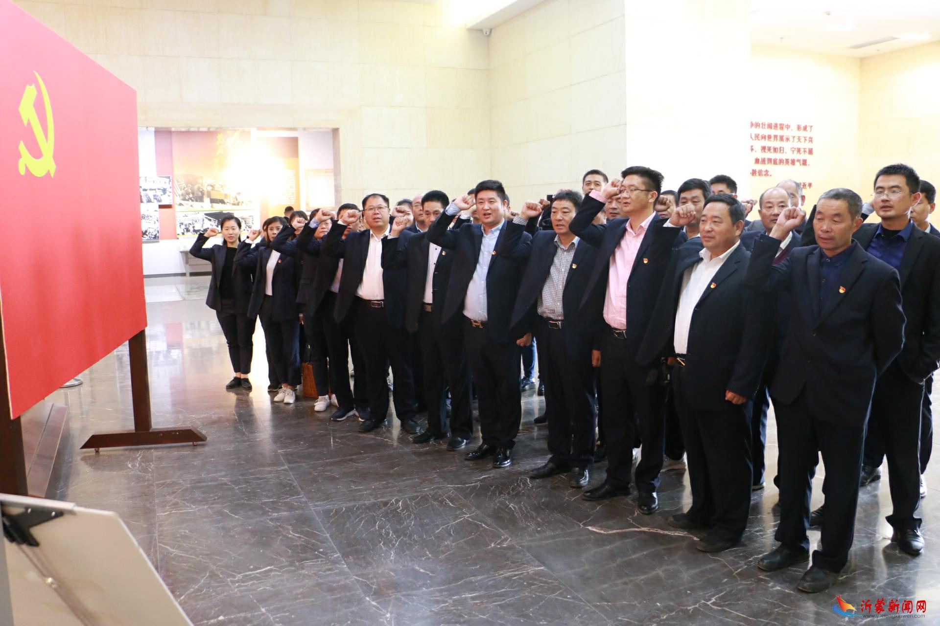 山东省政府和八路军115师司令部旧址是八路军115师司令部和中共山东分局、山东省政府诞生地,位于山东省临沂市莒南县大店镇。大店是鲁东南一座历史悠久的文化名镇,刘少奇、罗荣桓、朱瑞等老一辈革命家曾长期在这里生活、战斗、工作过。华东野战军(第三野战军)是人民解放军五大主力之一,是独立执行重大战略、战役任务的野战集团。在建国初期和新中国成立初期,华东军区、华东野战军在陈毅、粟裕领导下,在山东、江苏、河南、安徽、湖北、浙江、福建、上海八省纵横驰骋,共歼灭国民党武装247.6万余人,为推翻国民党反动统治、保卫新中国建立了不朽的功勋。在参观旧址和纪念馆过程中,大家认真聆听讲解员的解说,通过大量宝贵的文物史料,综合运用组画、图表、实物和声光电场景复原等手段,仔细观摩展品,仿佛回到了那段壮怀激烈的革命历史,亲历着一个个可歌可泣的革命事迹,感悟到了军民生死与共、水乳交融的沂蒙精神的深刻内涵,体会到“不忘初心,牢记使命”真谛。全体党员在山东抗日根据地纪念馆大厅内,面对党旗,举起右手,重温入党誓词。