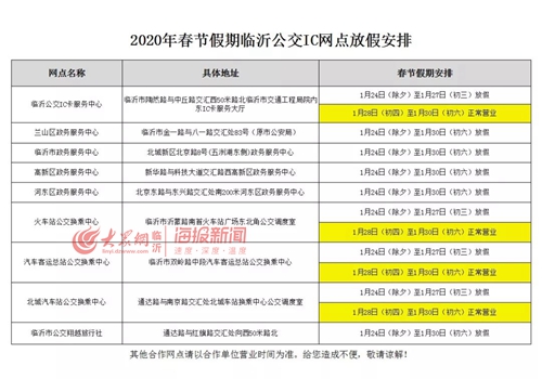 大众网·海报新闻临沂讯 2020年春节假期从1月24日开始至1月30日结束,共计7天。大众网·海报新闻记者从临沂公交集团获悉,春节期间公交运营时间有所调整,初六所有线路运营时间和班次恢复正常。