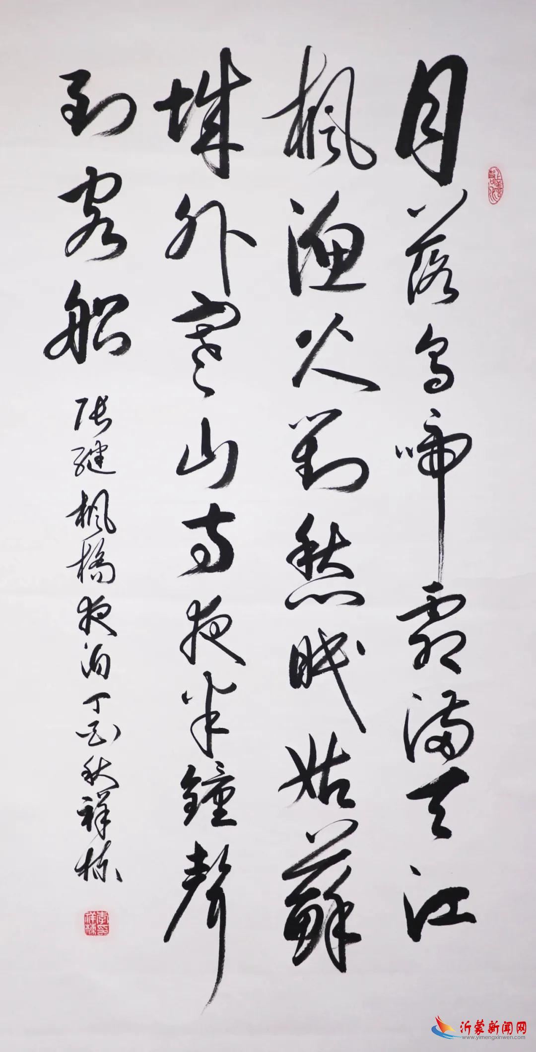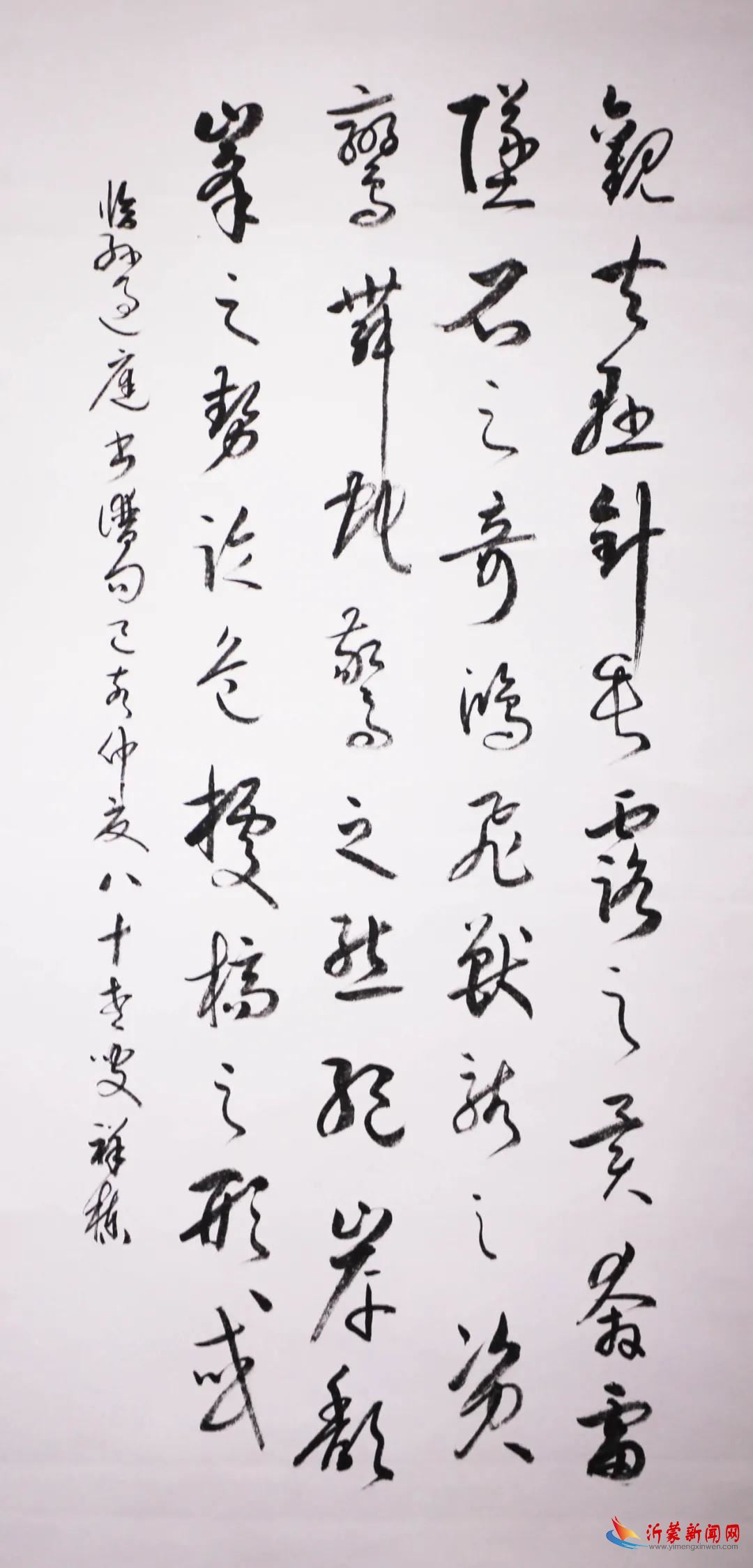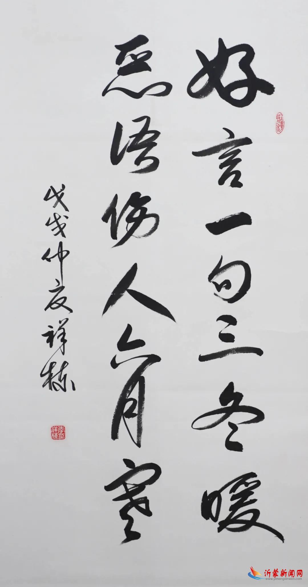 临沂市人大常委会原主任、书法家李祥栋先生在致辞中回顾了本次展览的缘起,并总结了自己在书法艺术中的体悟与收获。他说临沂是书圣故里,作为临沂人,不会“写字”是说不过去的,所以在临沂,人人会写字、人人会认字应当是必修课。有很多人认为,草书就是写得越潦草越叫“草书”,其实这是一个非常错误的认识,草书有严格的法度,一撇一捺一点,一不小心点错地方就会成为另一个字,即所谓“差之毫厘,谬以千里”,很多书法作品错字连篇,就是因为没有严格掌握书法规则与法度的原因。写好书法,没有秘诀,那就是老老实实学习古人,认真研习,才能形成自己的书法意象。总体而言,练好书法,须掌握“三多”:一是多读,读帖、临帖是书法的基本功,多读就是读古人的书法作品,尤其经典的书法作品,这是书法进步的必由之路;二是多练,没有练习就没有书法,就没有自己的书法体悟,当然也谈不上书法成就;三是多写,作为书法爱好者,应该专注一种又广泛涉猎,这样才能取长补短,不断精进、有突破。