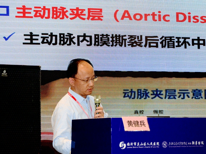 上海交通大学医学院附属新华医院心胸外科,医学博士黄健兵主任围绕主动脉夹层或动脉瘤介入治疗、微创冠脉搭桥手术的适应症及围术期管理进行了授课分享。