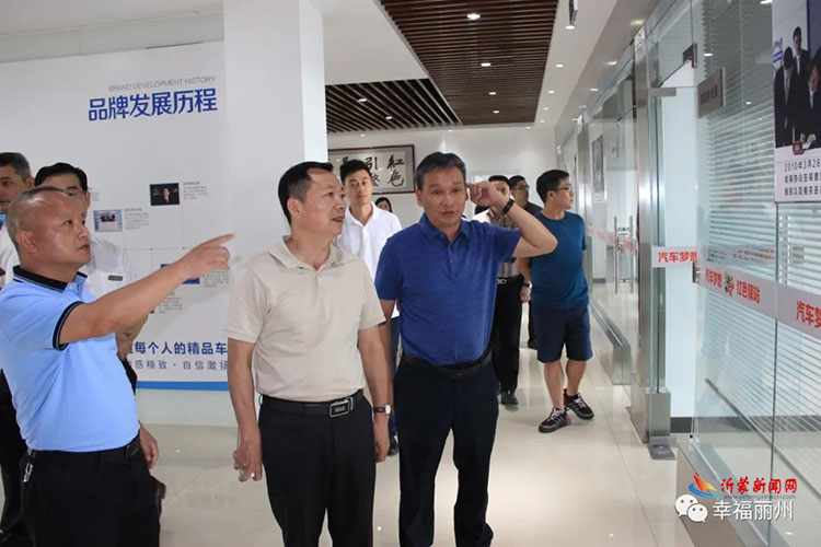 沂蒙新闻网讯(淑卿) 近日,上饶城投集团党委书记、董事长詹晓华一行来临沂丽州集团考察,上饶城投集团党委委员、副总经理张宇宏,上饶城投集团投资经营负责人杜长青,上饶城投集团投资经营部投资专员张年国;上饶城投远盛公司党支部书记、董事长况东宸一同前来公司考察指导工作。吉利汽车山东大区经理阎灵贵,吉利汽车鲁西区域经理于述伟,丽州集团集团董事长翁明海、副董事长兼华东华南华北大区CEO叶海水、集团总裁王济台、常务副总裁张健、营销副总裁卢振国、行政总监李永来、法务部经理程学真、策划部副经理叶英雄等陪同考察。