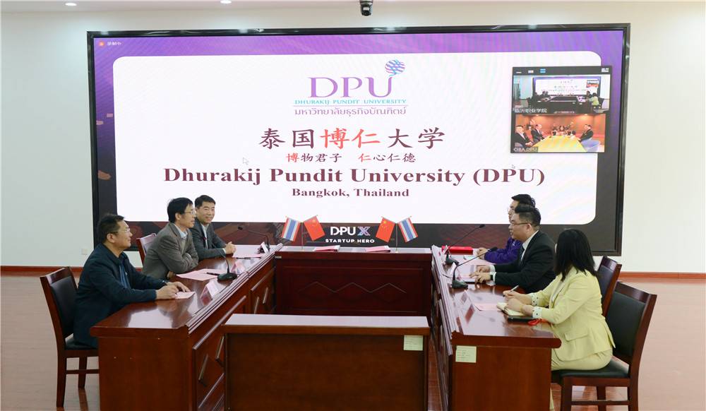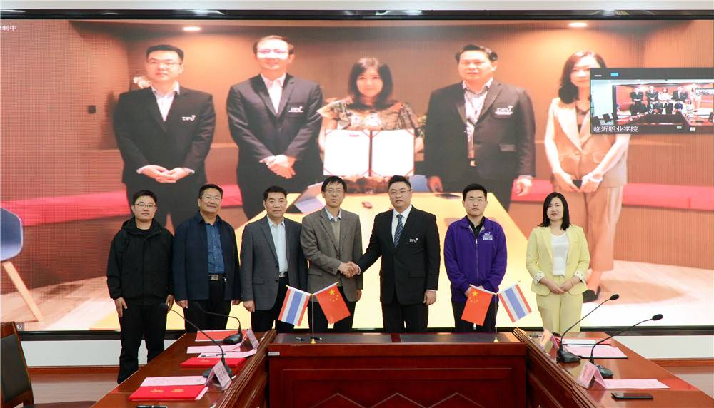 沂蒙新闻网讯(报道:王 璐) 2021年4月9日上午,中国临沂职业学院与泰国博仁大学合作备忘录签约仪式在临沂职业学院美术馆举行,现场通过网络连线泰国博仁大学同步进行挂牌签约仪式。临沂职业学院院长安丰和、副院长张金祥,博仁大学学术事务副校长Pattanant Petchchedchoo、创新商务与财经学院(CIBA)院长Siridech Kumsuprom、国际学院院长游翔以及博仁大学中国事务处长陈勇一行参加签约仪式。临沂职业学院国际学院部门负责同志及有关人员参加现场签约仪式。
