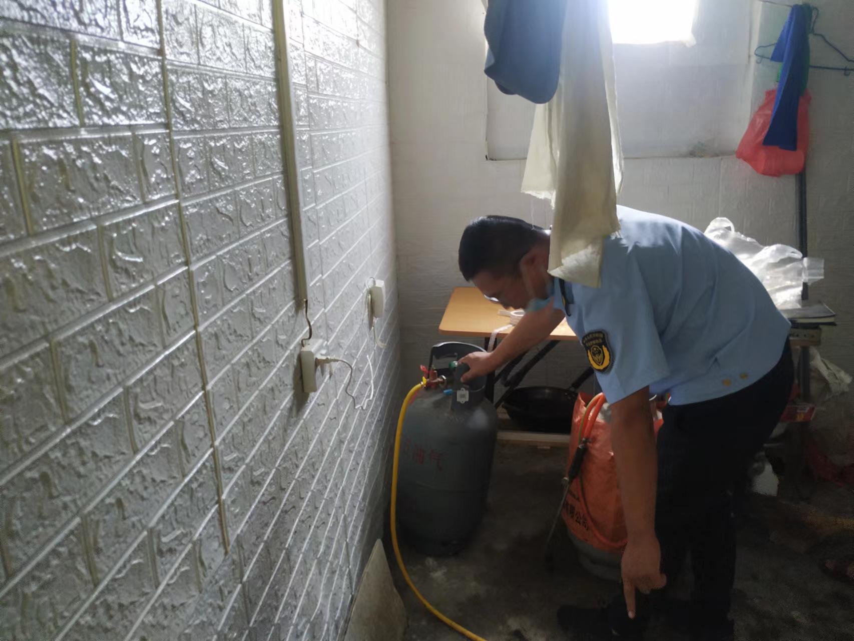 在检查中,工作人员重点围绕气瓶是否在检验有效期内、是否为改装翻新气瓶及报废气瓶;液化气软管是否老化,是否有分支现象,液化气与灶具距离是否规范等情况进行了细致的检查。
