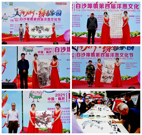 白沙埠镇作为书圣王羲之的故乡,书画文化源远流长。活动现场,来自临沂市的部分国家、省、市级知名书画家现场创作展示,为洋葱节活动添彩,充分展示了书画文化与艺术的魅力。